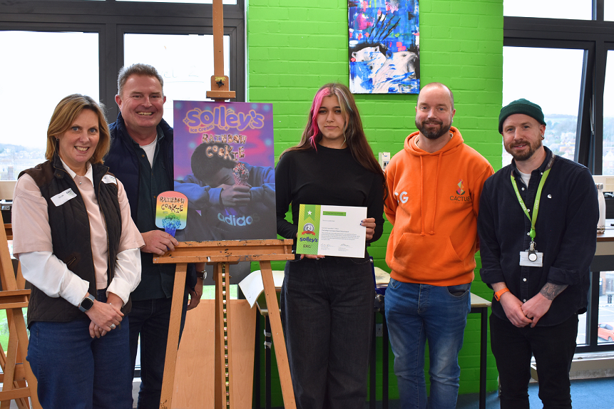 This term, the finished concepts were unveiled, with students pitching their ideas to a panel of judges including Katie Morrison (Director) and Keith Morrison (Managing Director) from Solley’s, alongside Richard Archer, Commercial Director of Cactus Graphics.
